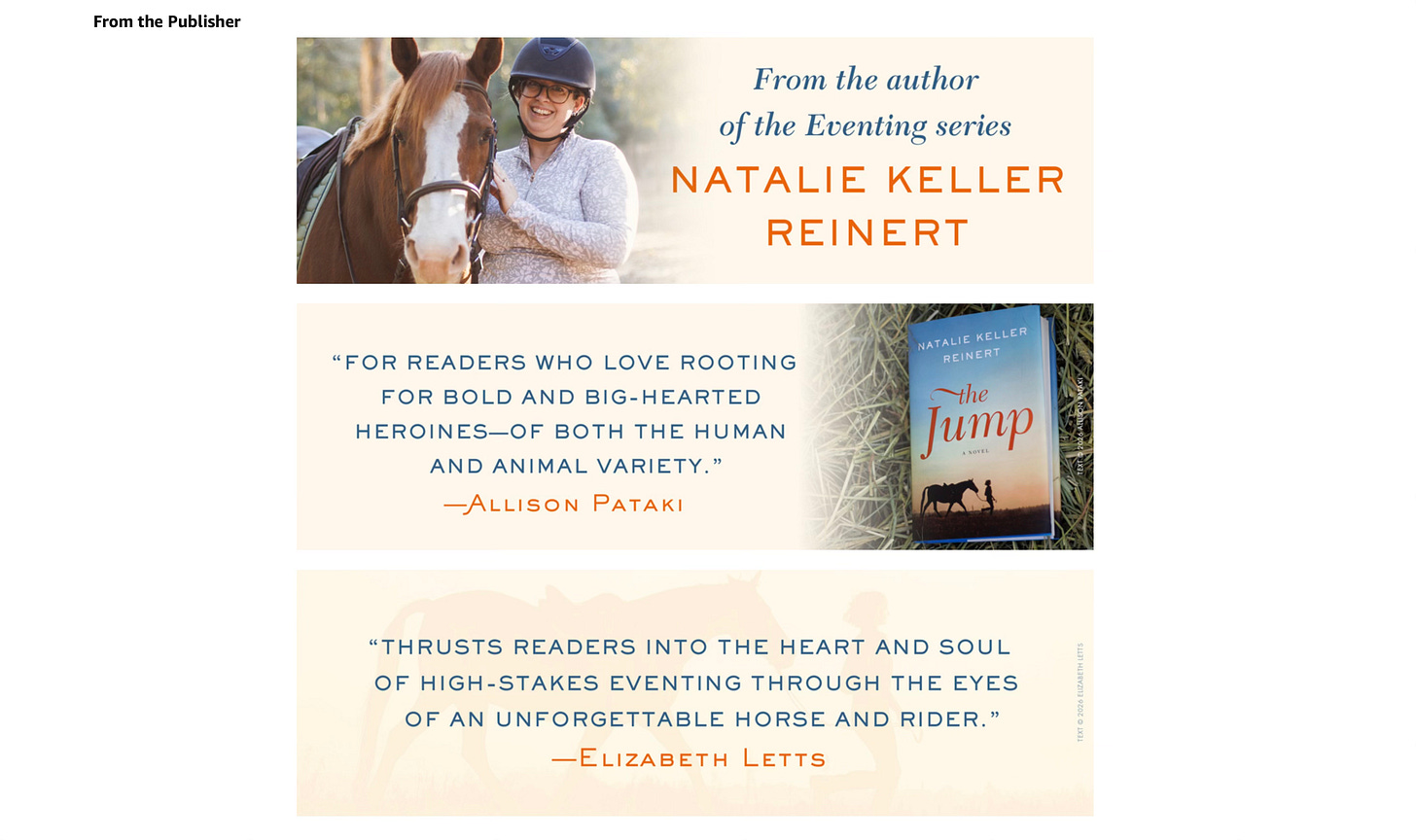 But seriously, I love that they included a picture of Ben and me in this. The Eventing Series’ A+ Content (also done by the publisher) focuses entirely on the books, and I am a little charmed that this showcases me, and my bona fides as an equestrian.